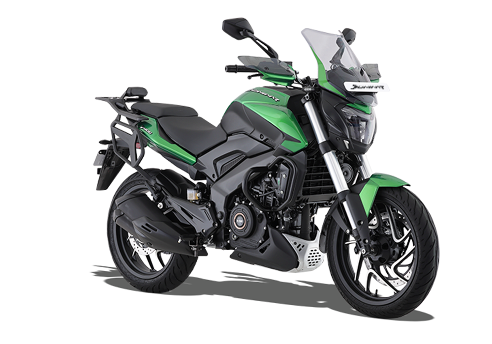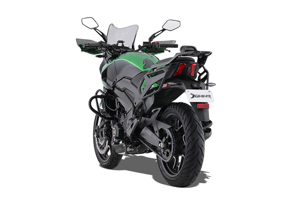 The Bajaj Dominar 400 is a robust sports tourer designed for riders seeking performance and comfort on long journeys. Powered by a 373.3 cc liquid-cooled, triple-spark engine, it delivers 40 PS at 8800 rpm and 35 Nm of torque at 6500 rpm, ensuring smooth acceleration and cruising capabilities. The bike features a 6-speed gearbox with an assist and slipper clutch, enhancing ride quality. Its perimeter frame, USD front forks, and monoshock rear suspension provide stability and control. With full LED lighting, a digital console, and dual-channel ABS, the Dominar 400 combines modern features with touring efficiency, making it a compelling choice for enthusiasts.