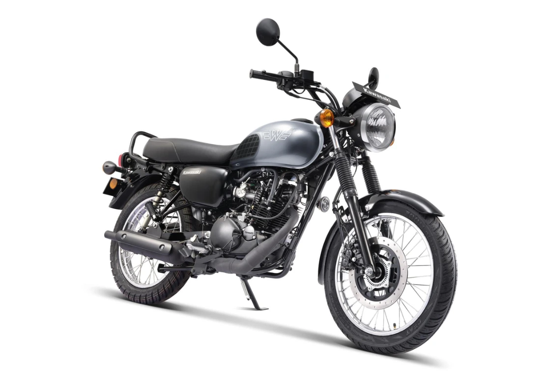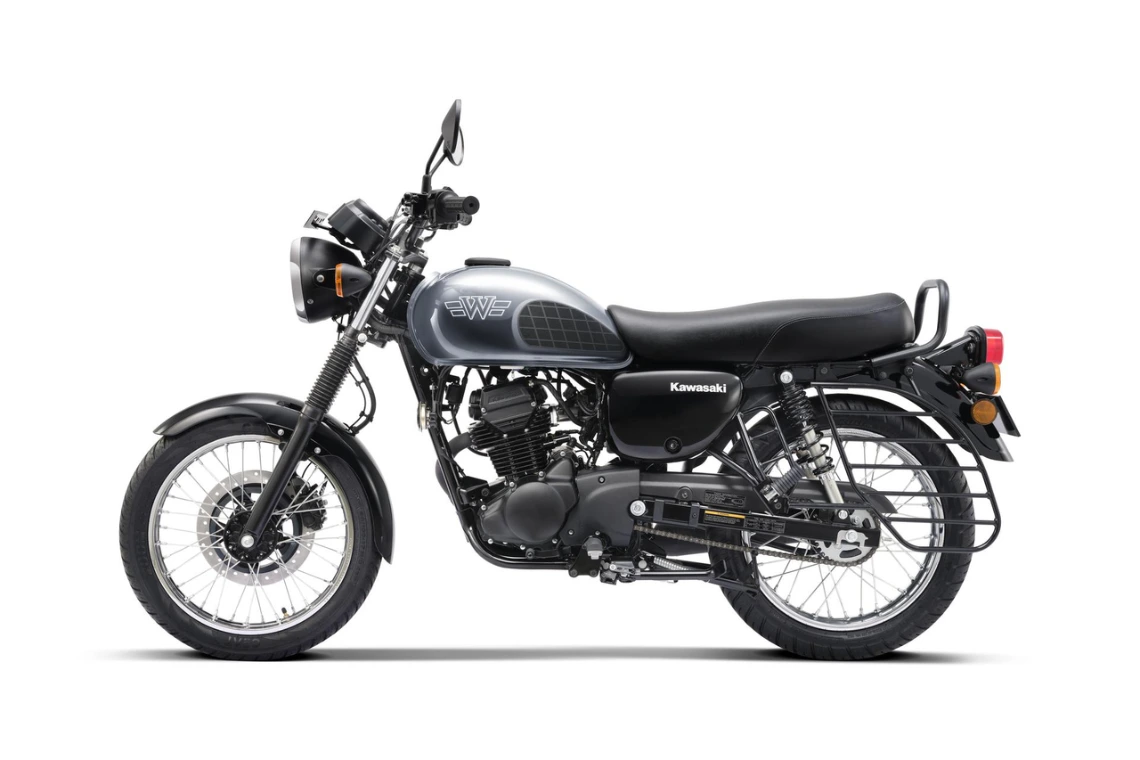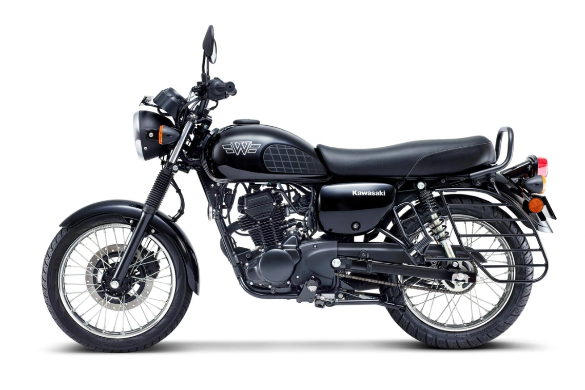 The Kawasaki W175 (2024) offers classic retro styling in a practical commuter package. Powered by a 177 cc air-cooled single-cylinder SOHC engine, it delivers 13 PS and 13.2 Nm via EFI and electric start. It’s built on a steel double-cradle frame with telescopic front forks and dual rear shocks that handle urban riding with ease. Safety is ensured by a 270 mm front disc with single-channel ABS and a 110 mm rear drum. Lightweight at 135 kg with a 120 mm seat and 165 mm ground clearance, this bike is both nimble and user-friendly, with a top speed around 110 km/h and mileage near 45 kmpl.