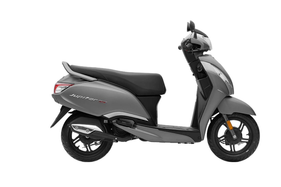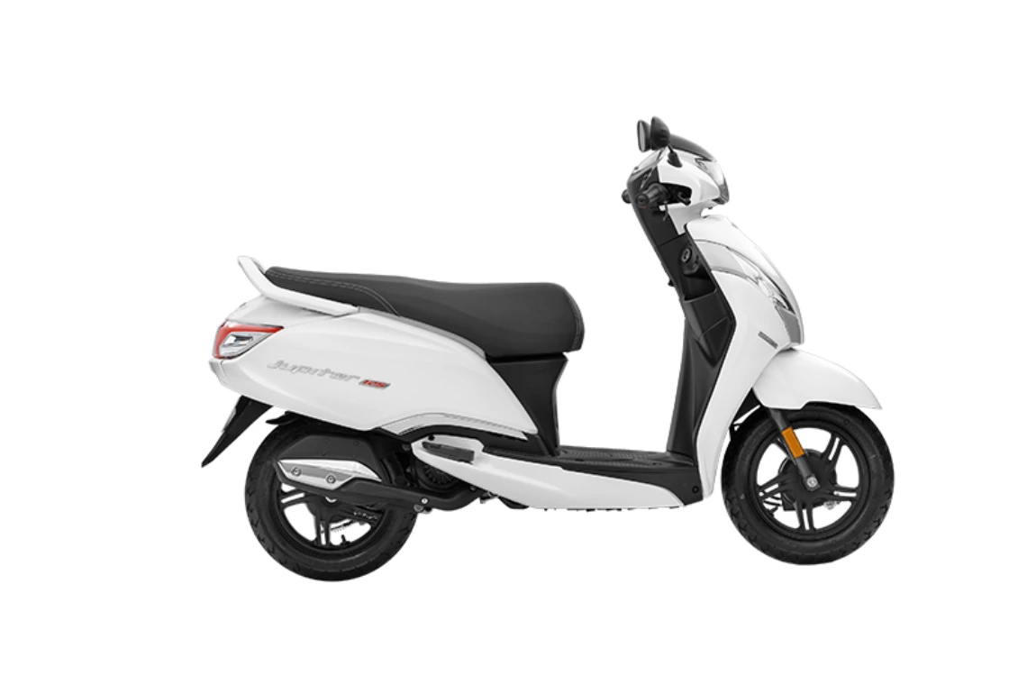 The TVS Jupiter 125 SmartXonnect is a feature-packed, practical scooter aimed at modern commuters. Its 124.8 cc air-cooled engine with ETFi delivers around 8 PS and 10.5 Nm of torque, enhanced by iGO Assist for responsive starts. A whisper-quiet electric start comes via an integrated starter generator. The scooter offers 33 L storage, 5.1 L fuel tank, and efficient fuel consumption (~57 kmpl ARAI). With 12″ alloy wheels, LED DRL headlamp, disc front brake with SBT, and a fully digital SmartXonnect display featuring navigation, call/SMS alerts, and ride stats, it couples convenience with connectivity for seamless daily rides.