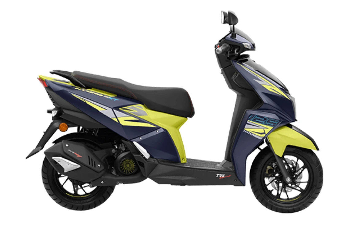The TVS Ntorq 125 is India’s first Bluetooth-connected performance scooter, blending sporty dynamics with smart tech. Its 124.8 cc 3-valve fuel-injected engine delivers 9.4 PS and 10.6 Nm, paired with kick and electric start, and a smooth CVT. Built on a rigid underbone frame with telescopic front forks and toggle-link rear suspension, it offers confidence on urban roads. Front disc brake with Synchronized Braking, tubeless tyres, and LED lighting enhance safety. The fully digital SmartXonnect console provides turn-by-turn navigation, alerts, and ride statistics. With a 5.8 L tank, 95 km/h top speed, and lightweight agility, the Ntorq is a modern daily ride.